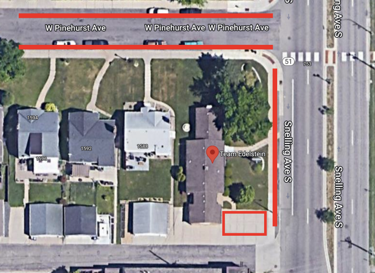 Parking is available on Snelling Avenue in front of the Team Edelstein building (going south) and on Pinehurst Avenue (to the right of the building). There is also limited parking on the left side of the building.